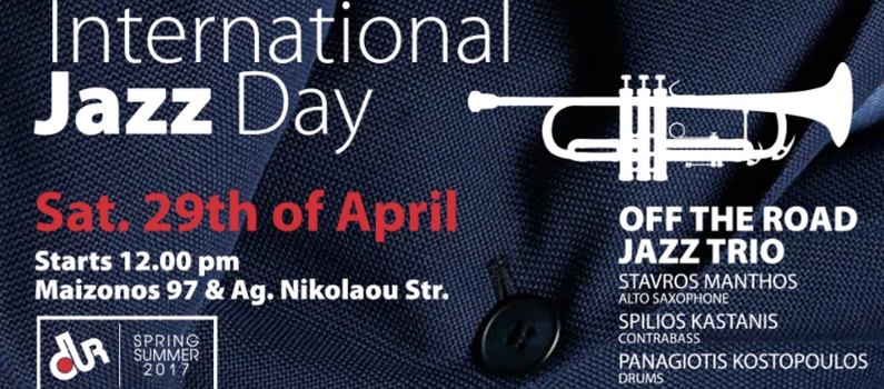 Η DUR γιορτάζει την Παγκόσμια Ημέρα Jazz δημιουργώντας μια διαφορετική εμπειρία για τους φίλους του αγαπημένου brand.  Το Σάββατο 29 Απριλίου στις 12.00 μ.μ. στο κεντρικό κατάστημα της DUR στην Πάτρα Μαιζώνος 97 & Αγ. Νικολάου, ένα μοναδικό jazz trio σχήμα θα ζωντανέψει τις αισθήσεις μας και θα μας ξεναγήσει στον ιδιαίτερο κόσμο της jazz μουσικής.