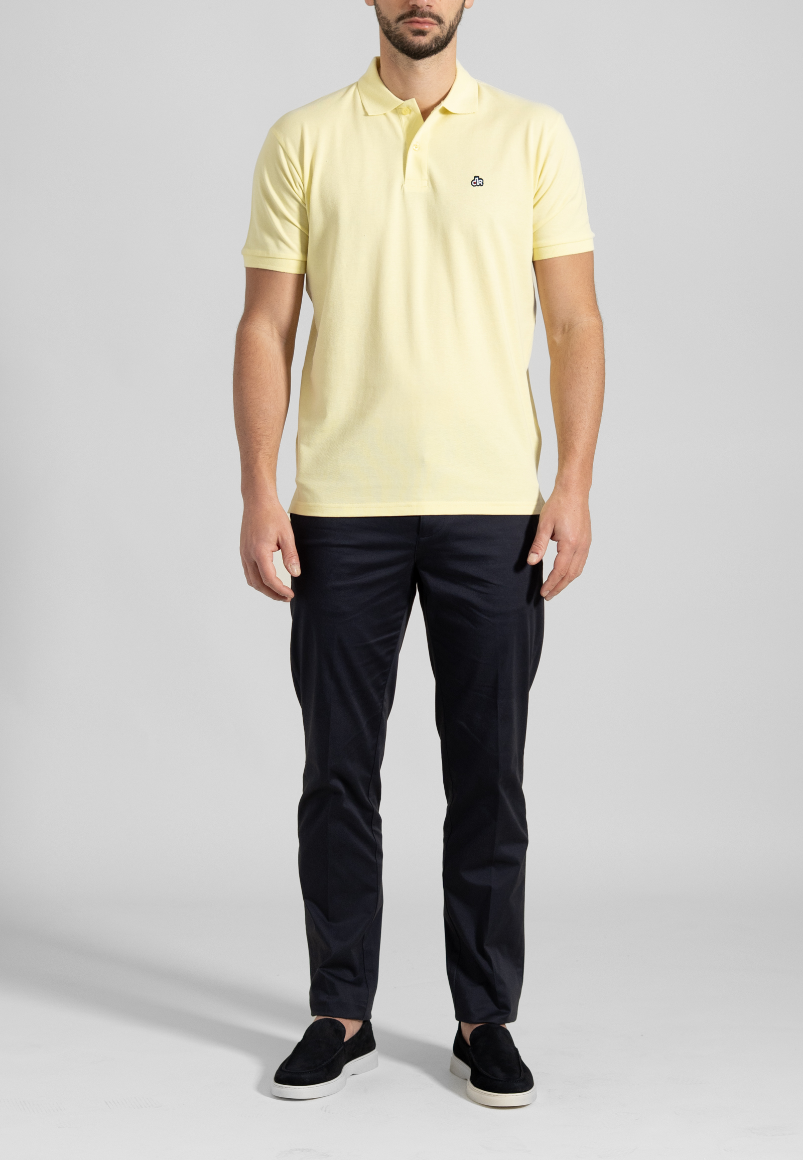 Regular fit combed cotton polo shirt. Piquet structured made of fine yarns, two fildisi buttoned placket, rip collar, short sleeves with rip endings, side slits and emroidered logo at the chest.