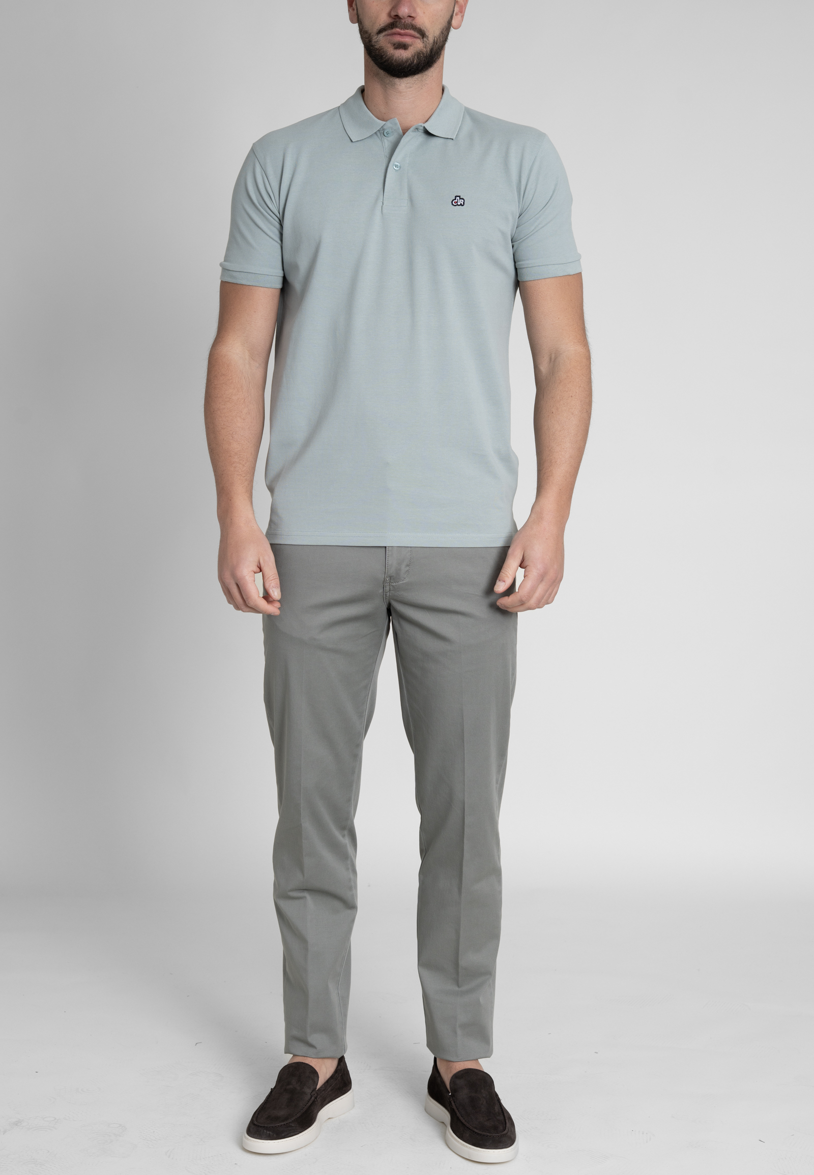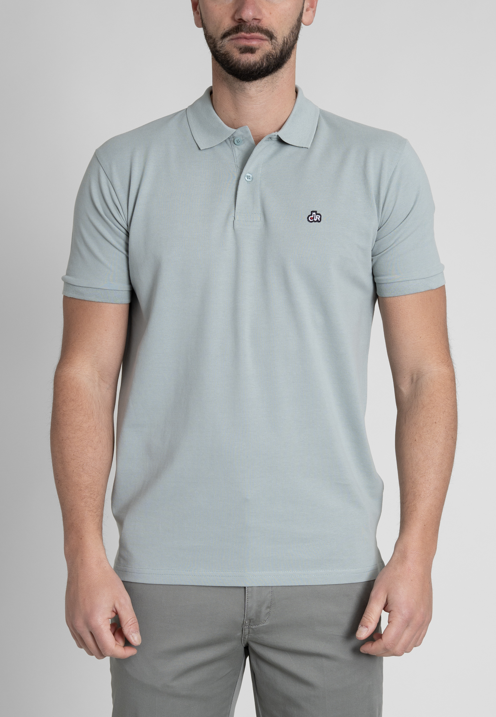 Regular fit combed cotton polo shirt. Piquet structured made of fine yarns, two fildisi buttoned placket, rip collar, short sleeves with rip endings, side slits and emroidered logo at the chest.