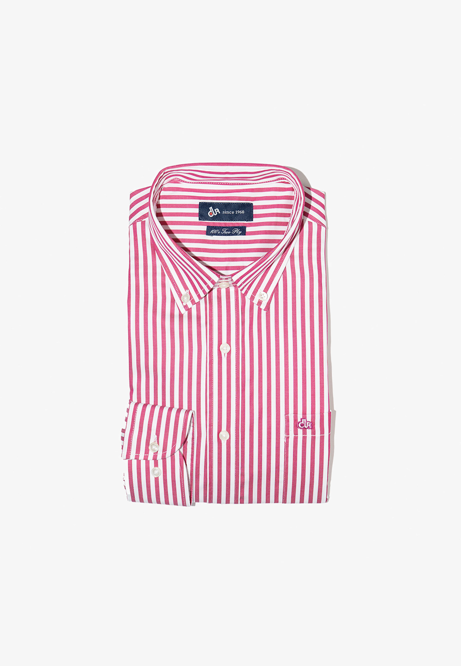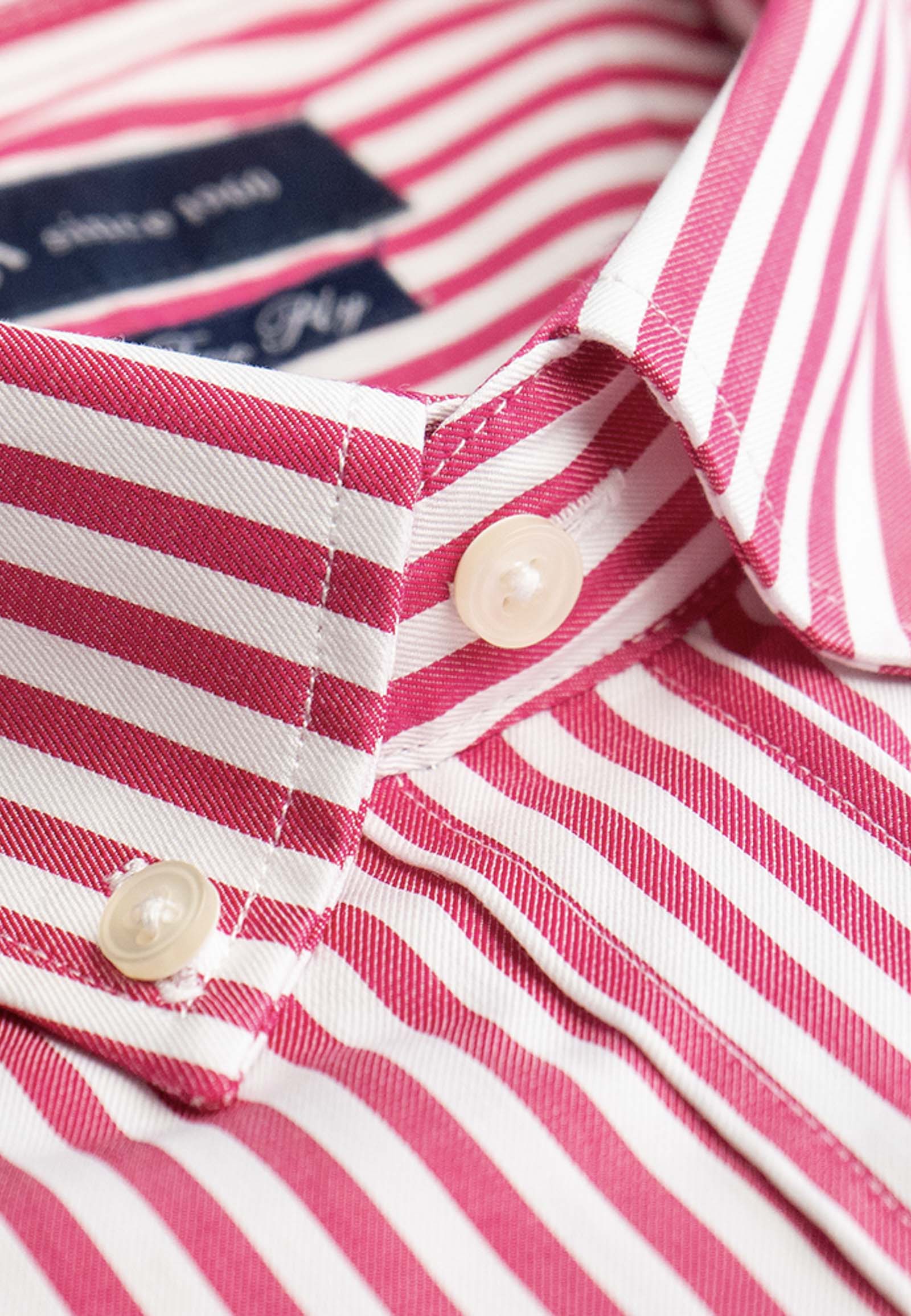 Striped shirt in regular line. Buttoned down collar, round pocket with embroidered the brand logo and round cuff with two adjustable buttons.