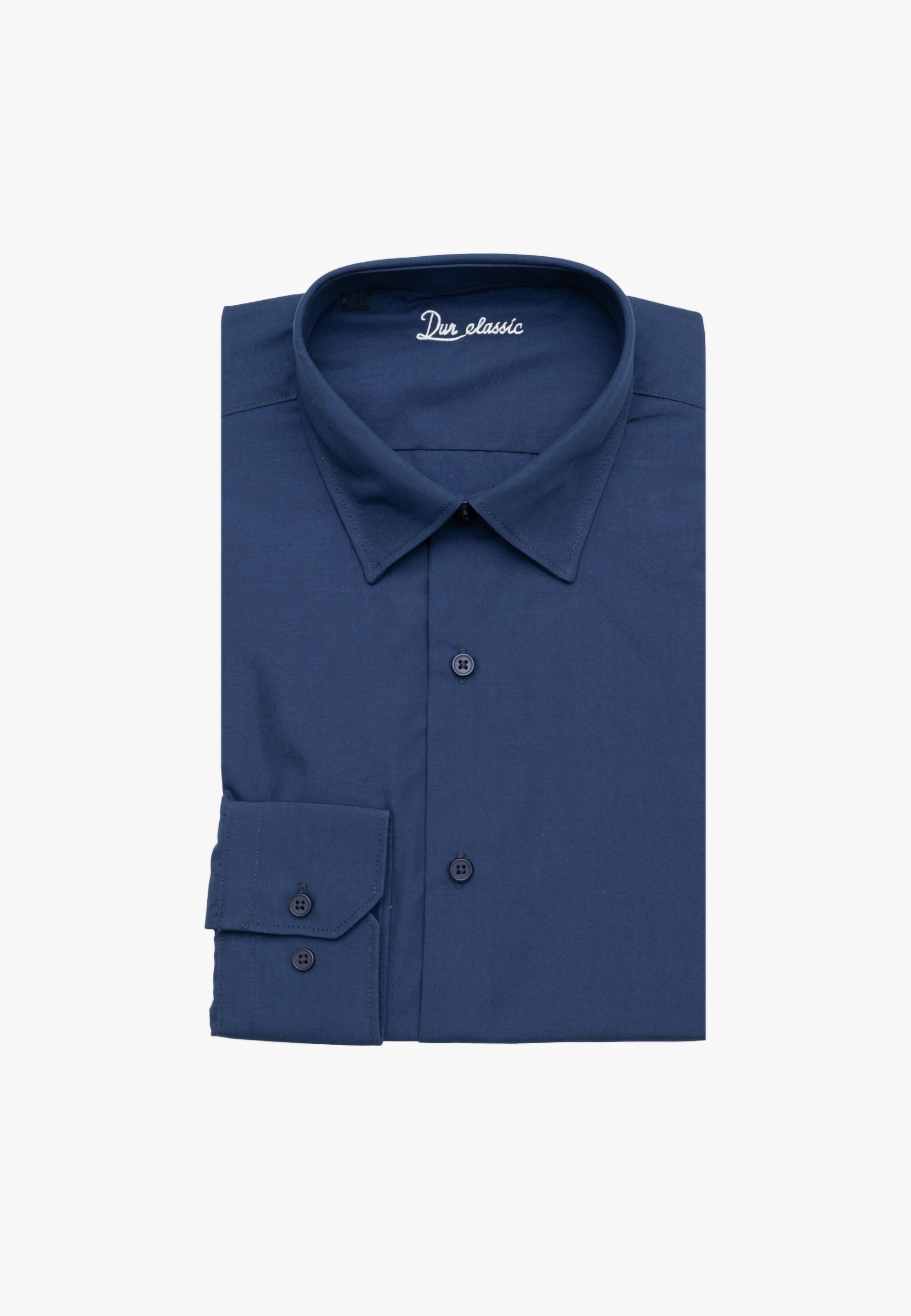 Poplin shirt in regular line. Soft pointed collar, seven buttoned placket front and mitered cuff with two adjustable buttons.