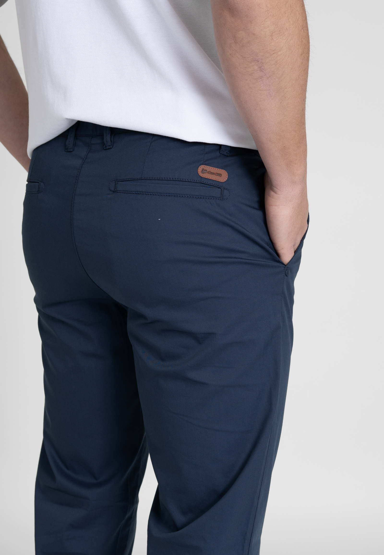 Tech lightweight elastic cotton trousers. Medium waist, zip fly and snap fastening and two side pocket. Two welt pockets at the back and a leather tab embossed with the brand logo. Quick drying.