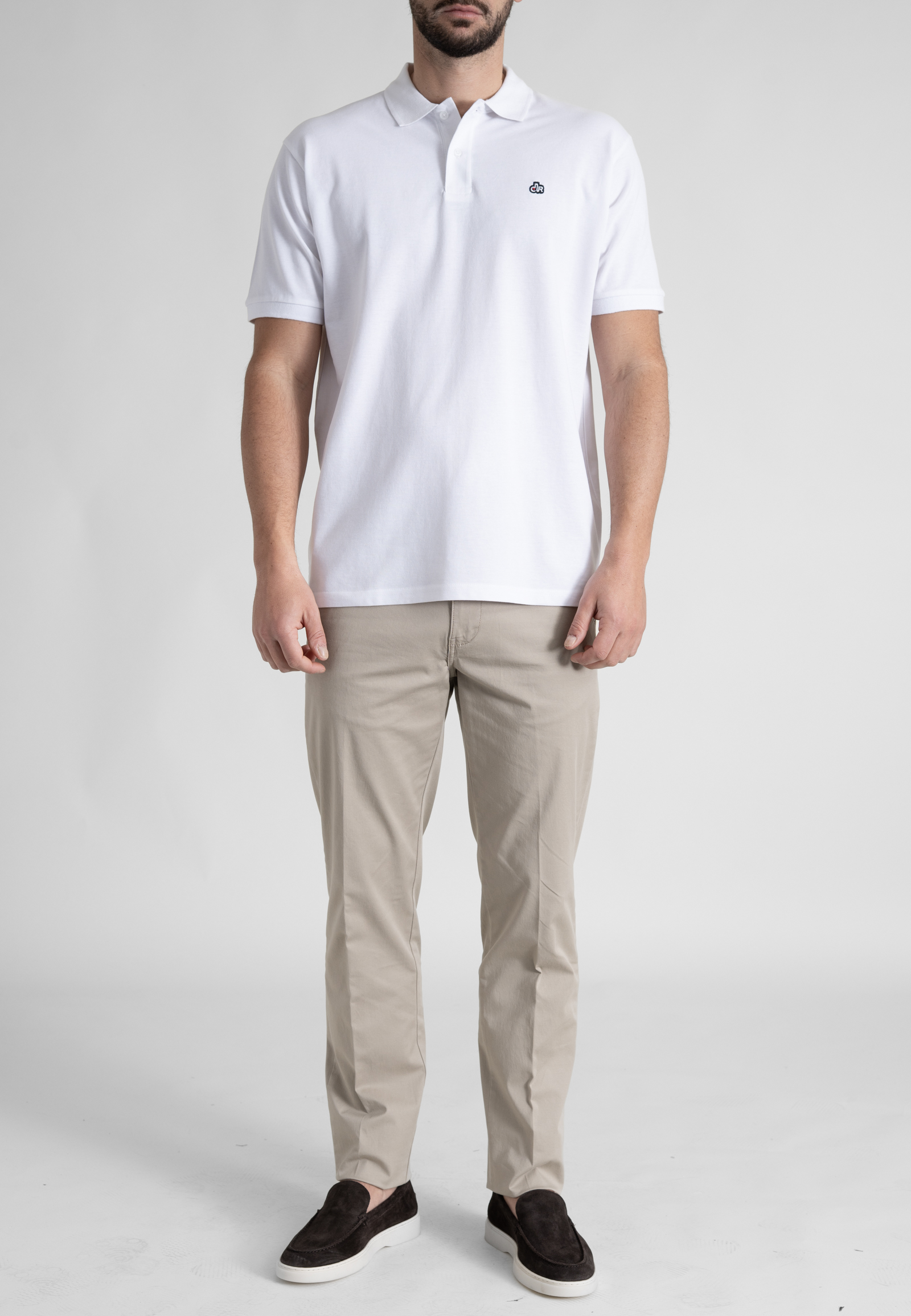 Regular fit combed cotton polo shirt. Piquet structured made of fine yarns, two fildisi buttoned placket, rip collar, short sleeves with rip endings, side slits and emroidered logo at the chest.