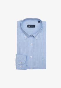 Πουκάμισο μικρό καρό σε κανονική γραμμή. Γιακάς ρεξ με αποσπώμενη μπανέλα, μανσέτα κοφτή με δύο ρυθμιζόμενα κουμπιά. Τσέπη στρογγυλή με κεντημένο το λογότυπο.