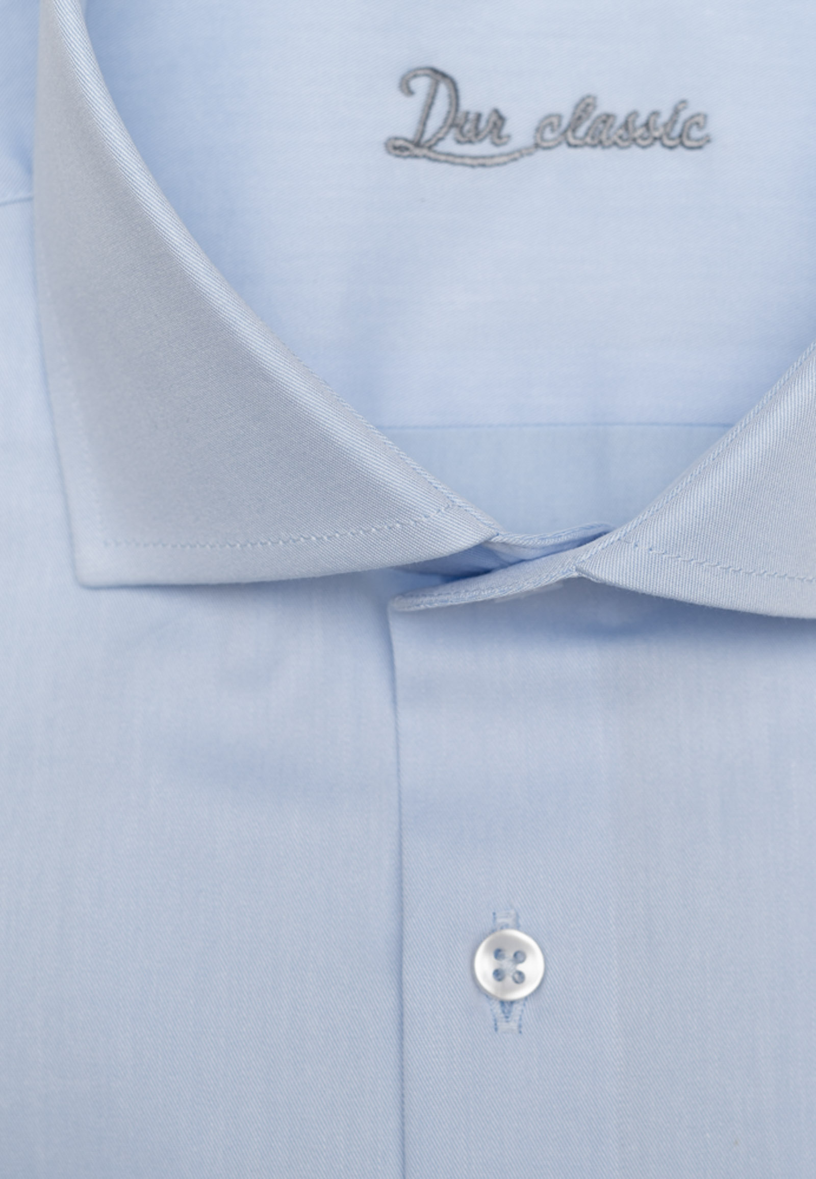 Πουκάμισο δίκλωνο twill σε κανονική γραμμή. Γιακάς ρεξ με αποσπώμενη μπανέλα και μανσέτα κοφτή με δύο ρυθμιζόμενα κουμπιά.
