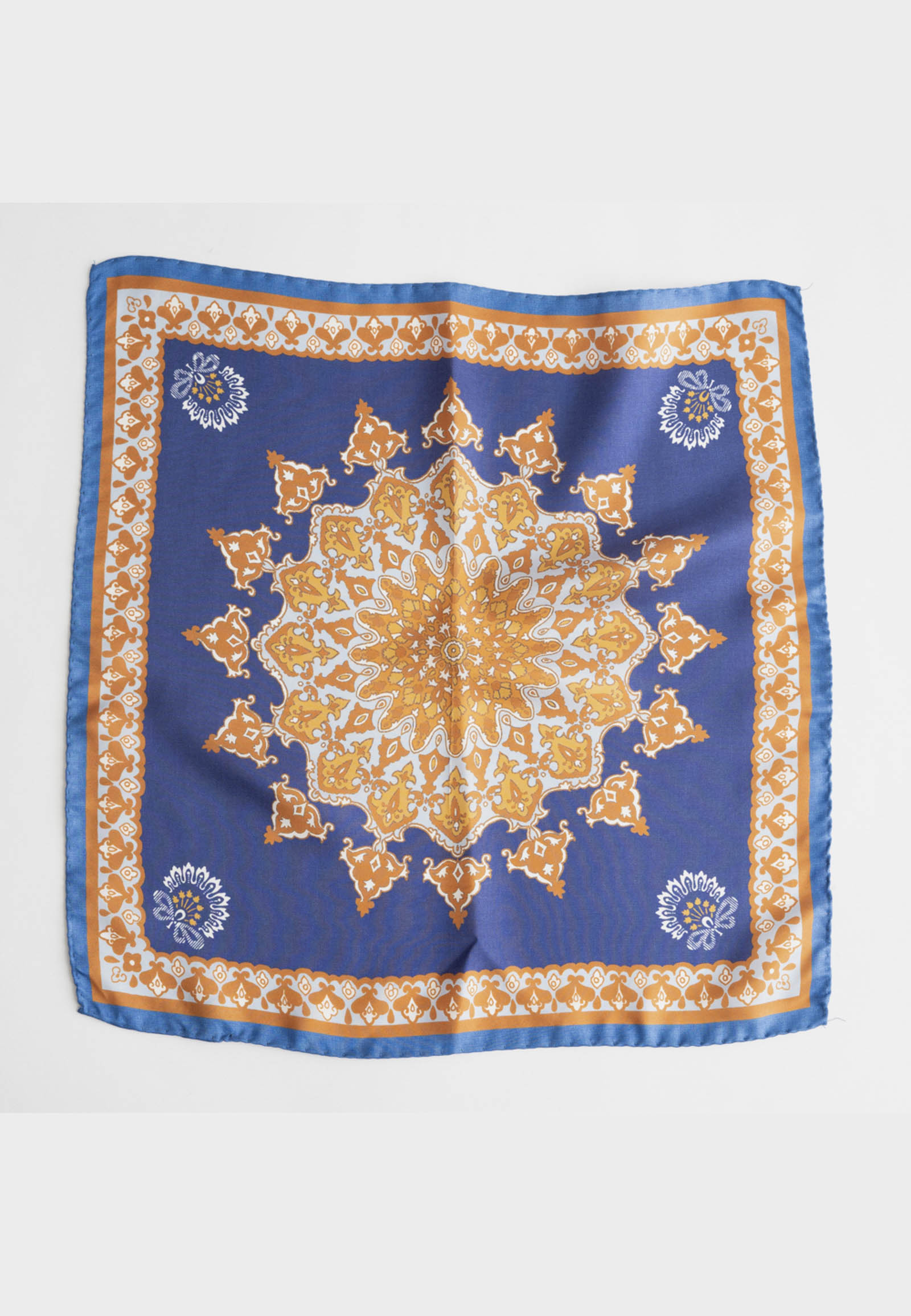 Μπλε-μουσταρδί μεταξωτό μαντηλάκι για την τσέπη. Ένα κομψό αξεσουάρ που ολοκληρώνει το στυλ των blazers με μία μοντέρνα πινελιά.