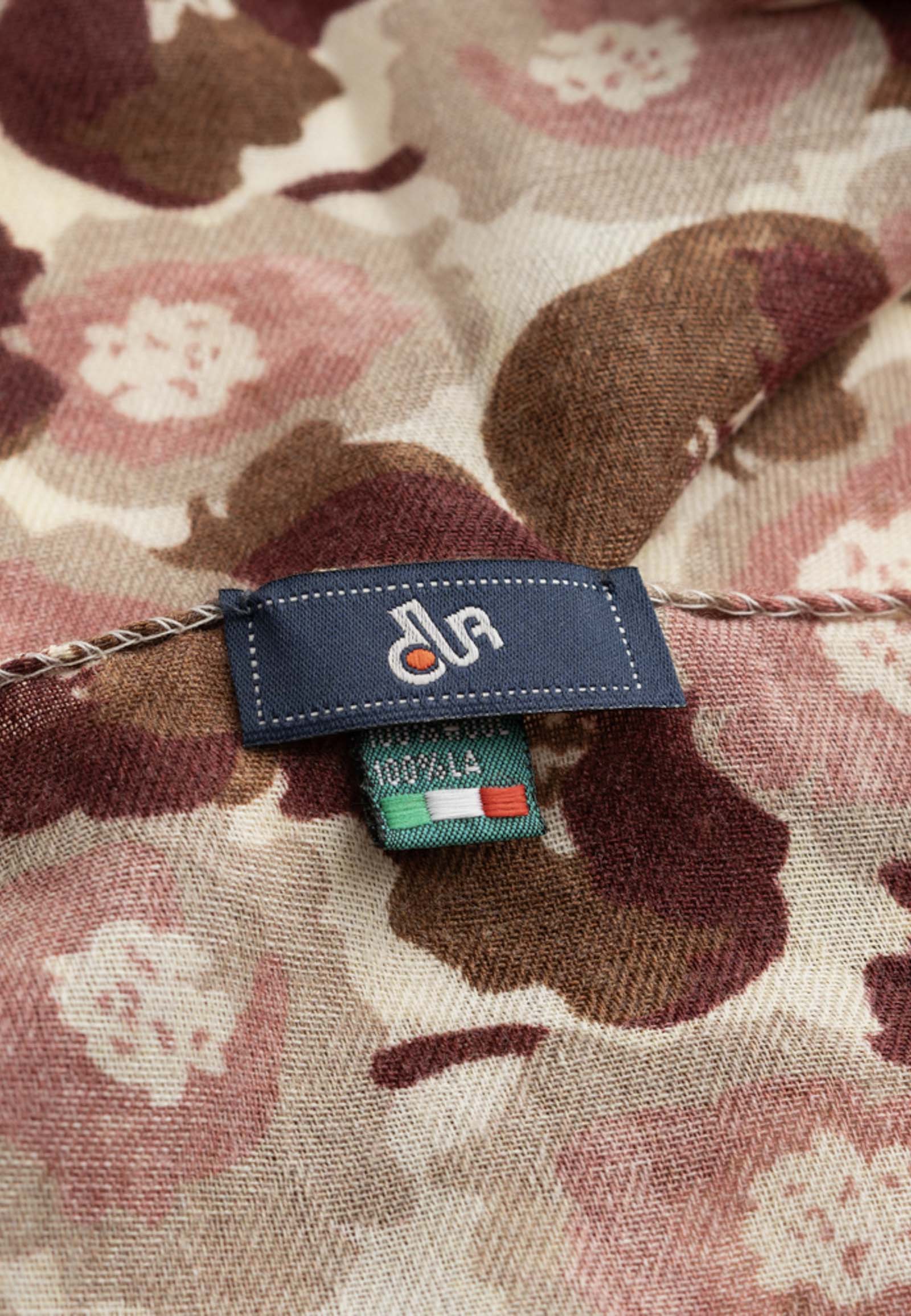Μπορντό κασκόλ από μαλλί με σχέδιο λουλούδια.