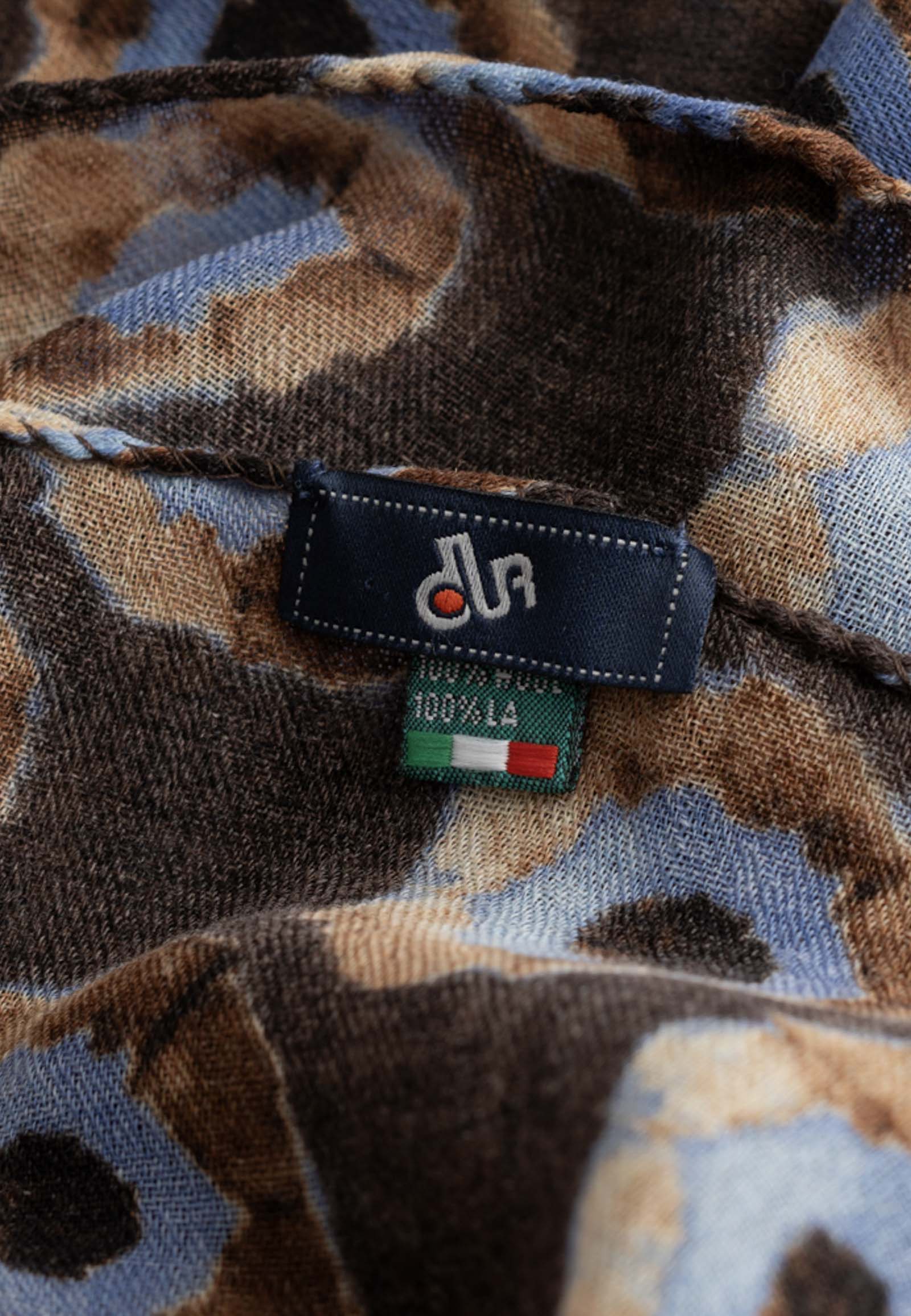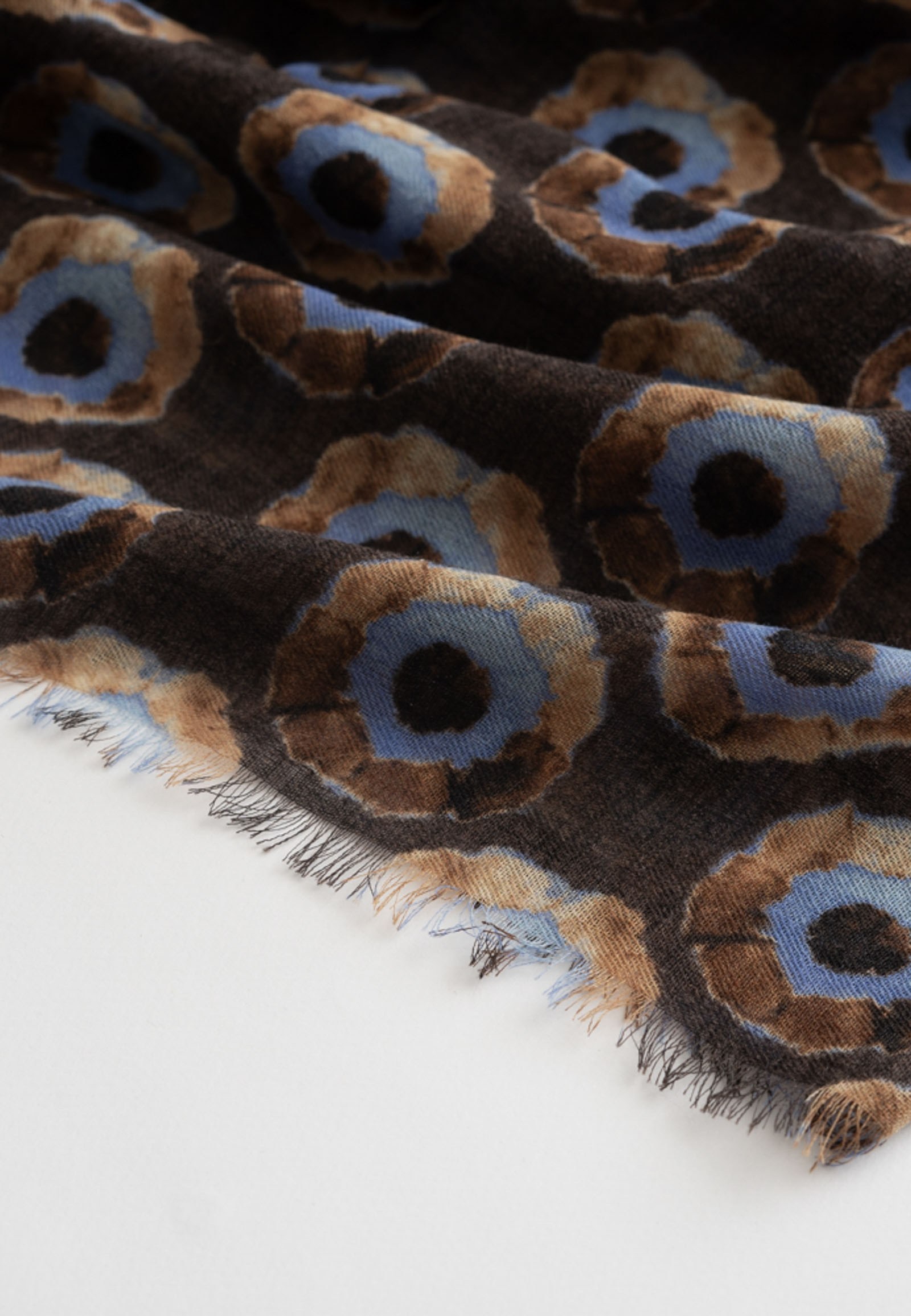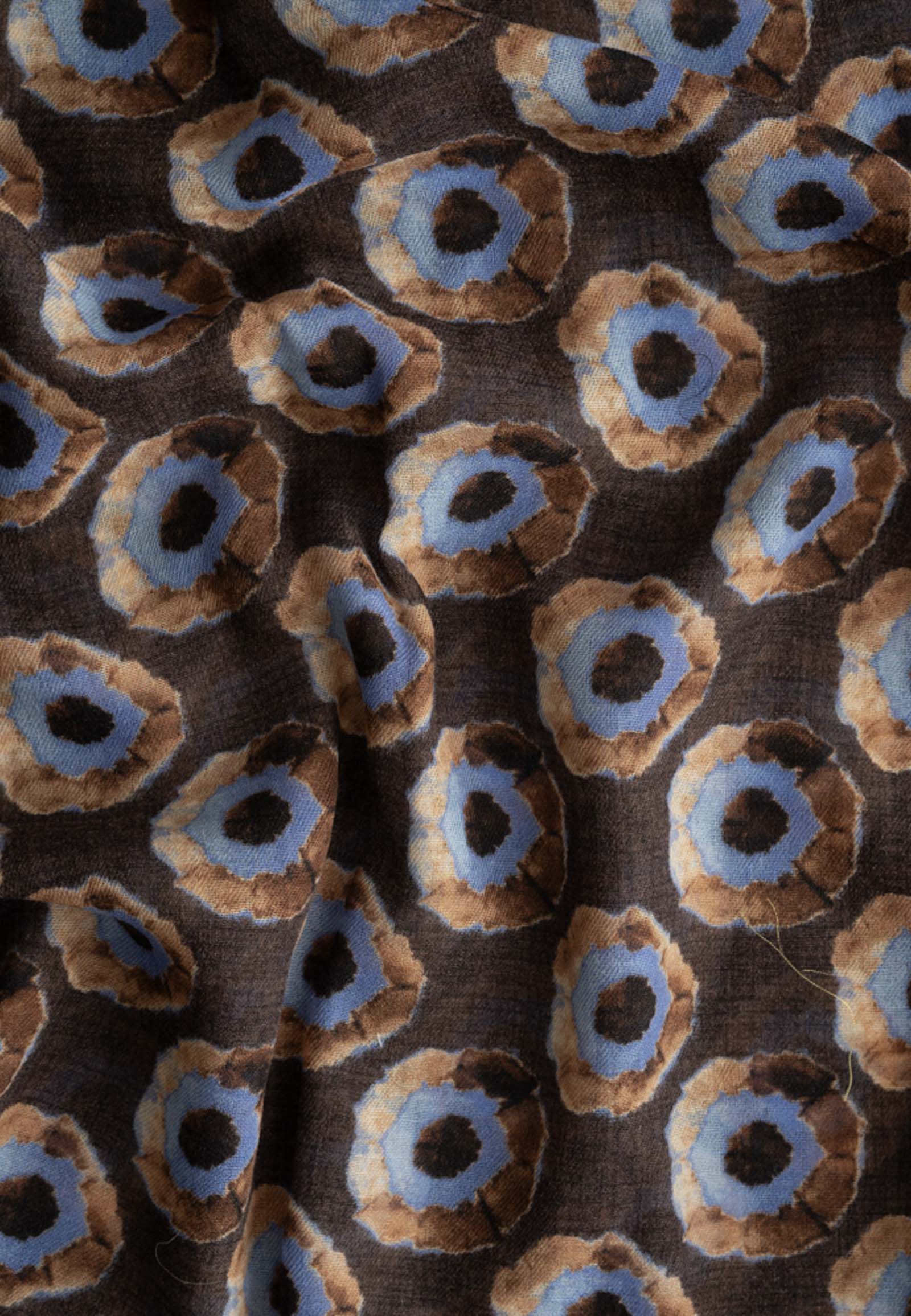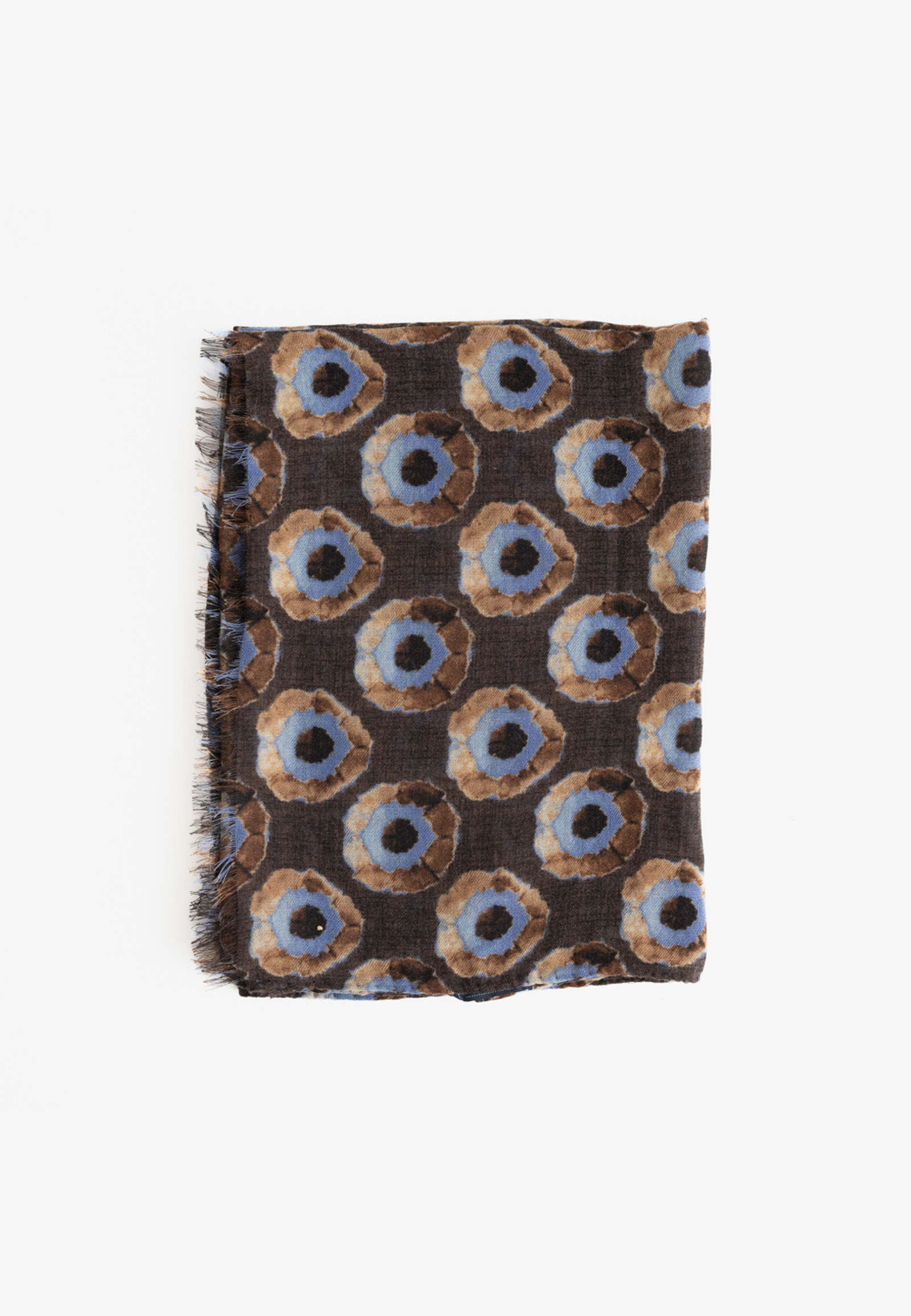 Καφέ κασκόλ από μαλλί με σχέδιο κύκλους σε μπλε χρώμα.
