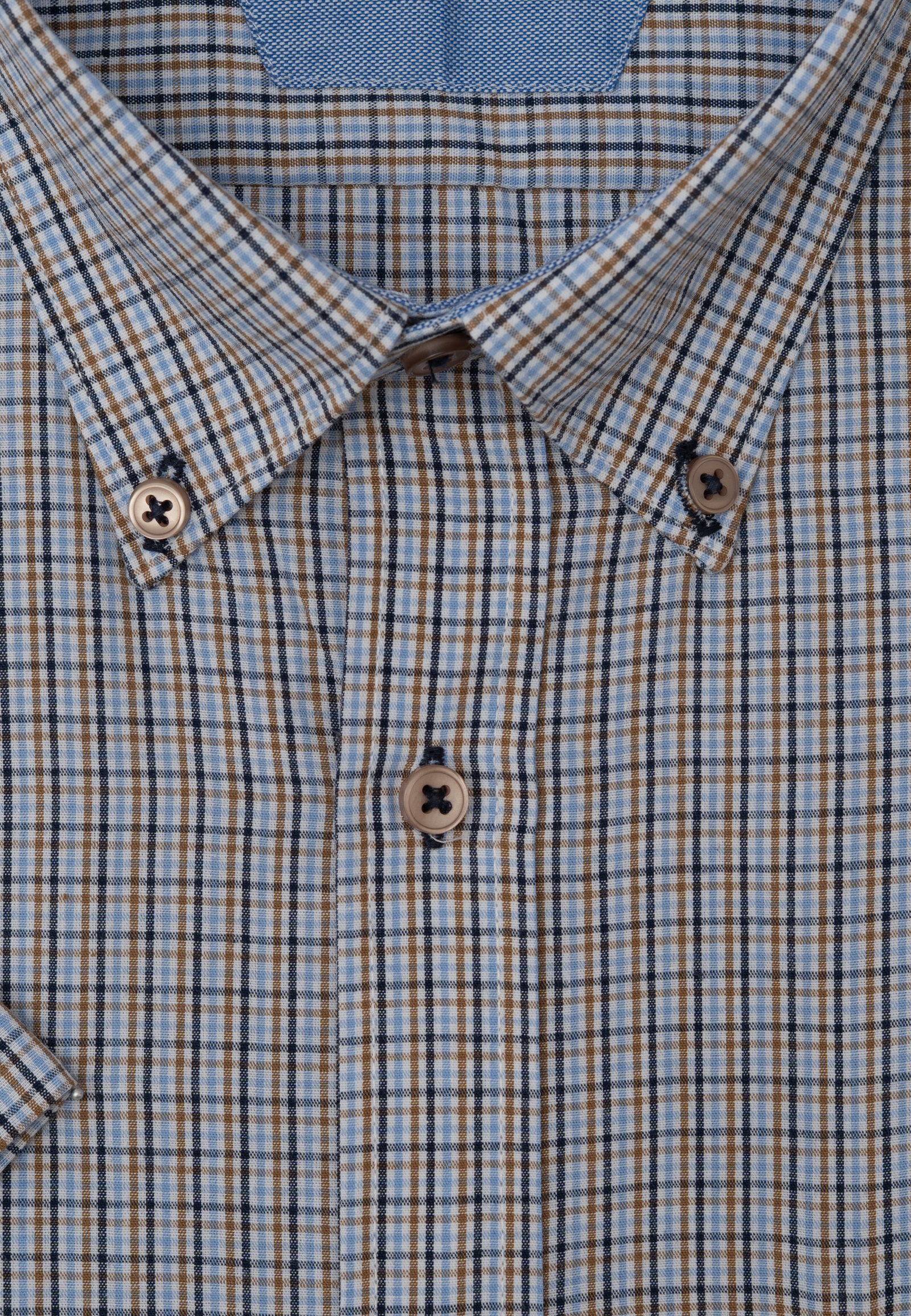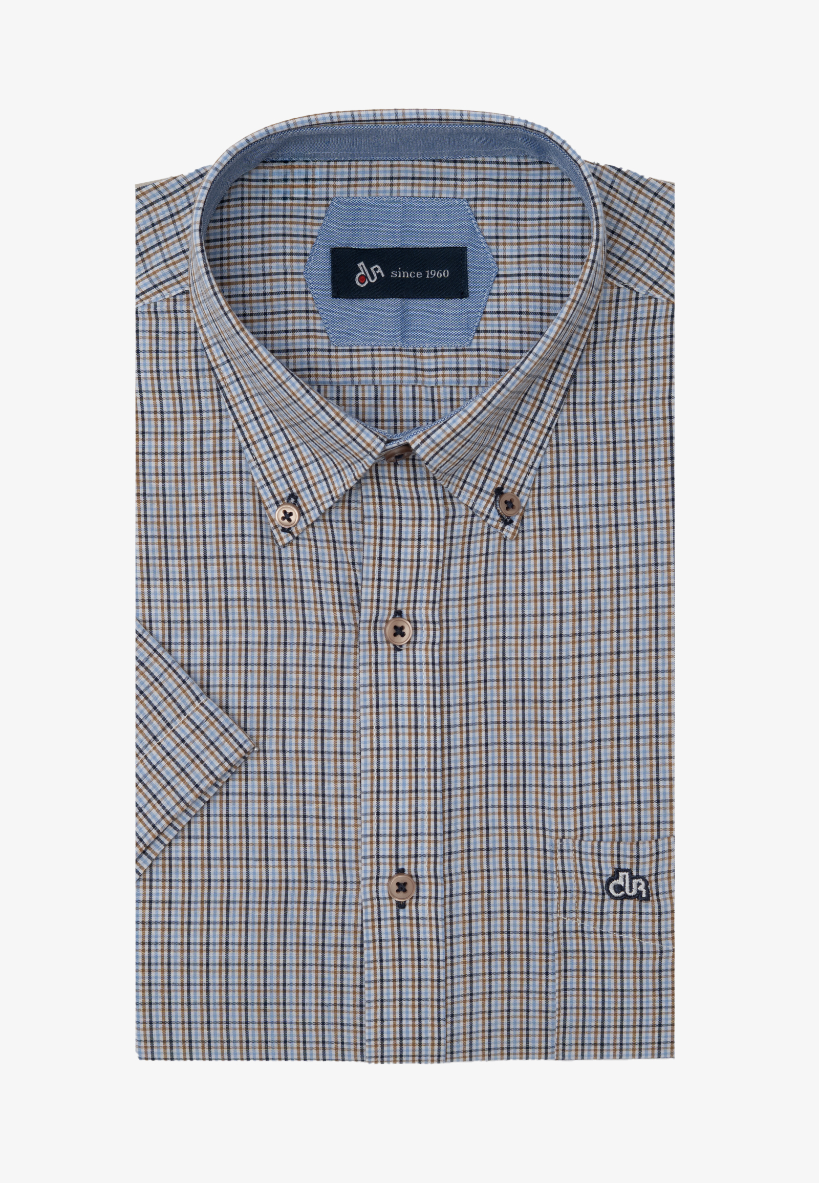 Καφέ Πουκάμισο κοντό μανίκι καρό κανονική γραμμή