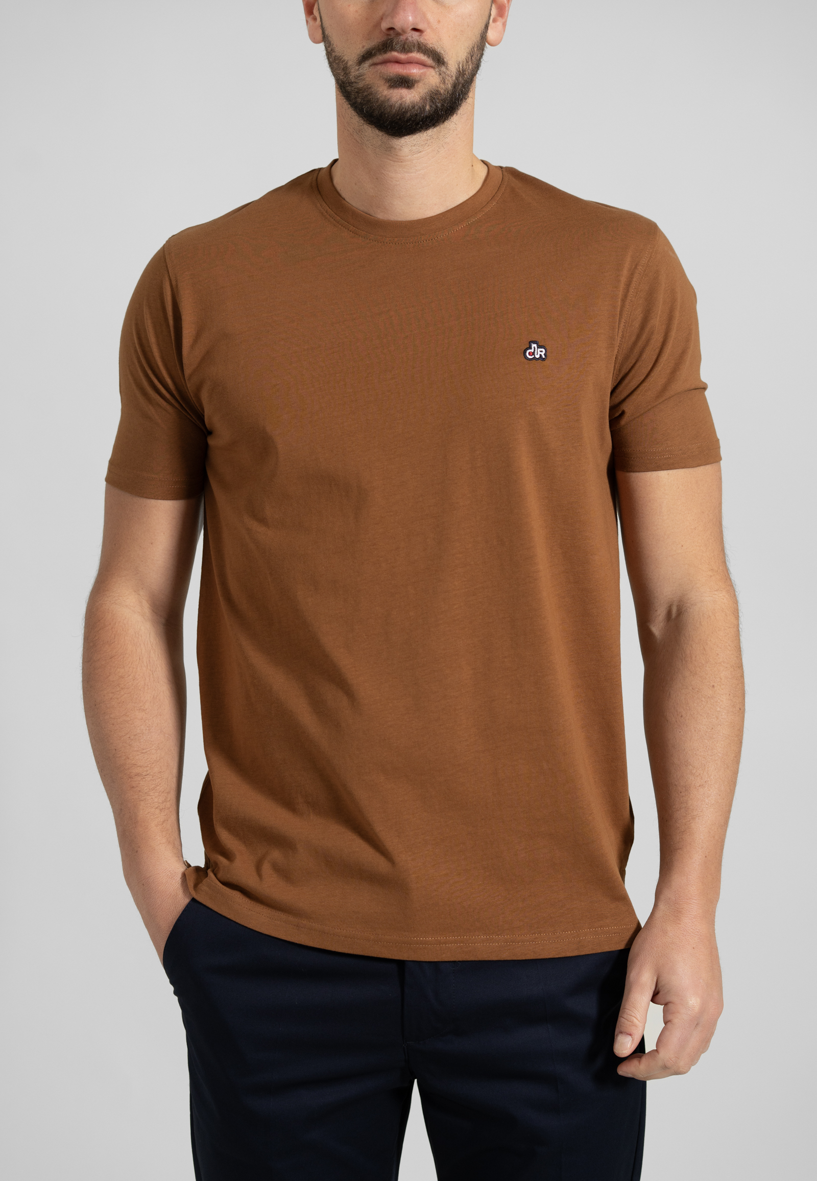 Mπλούζα λαιμόκοψη από βαμβάκι combed. Κανονική γραμμή, μανίκι κοντό, σκισίματα στις κάτω πλαϊνές ραφές και το λογότυπο Dur στο στήθος.