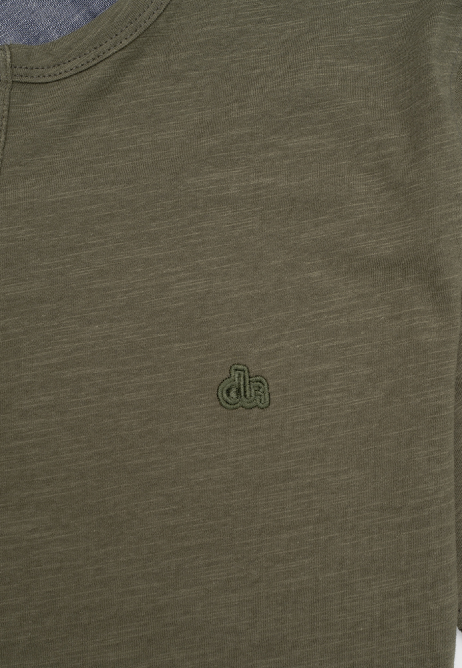 Mπλούζα slub jersey λαιμόκοψη με κουμπιά. Κανονική γραμμή, μανίκι κοντό, σκισίματα στις κάτω πλαϊνές ραφές και το λογότυπο Dur στο στήθος.