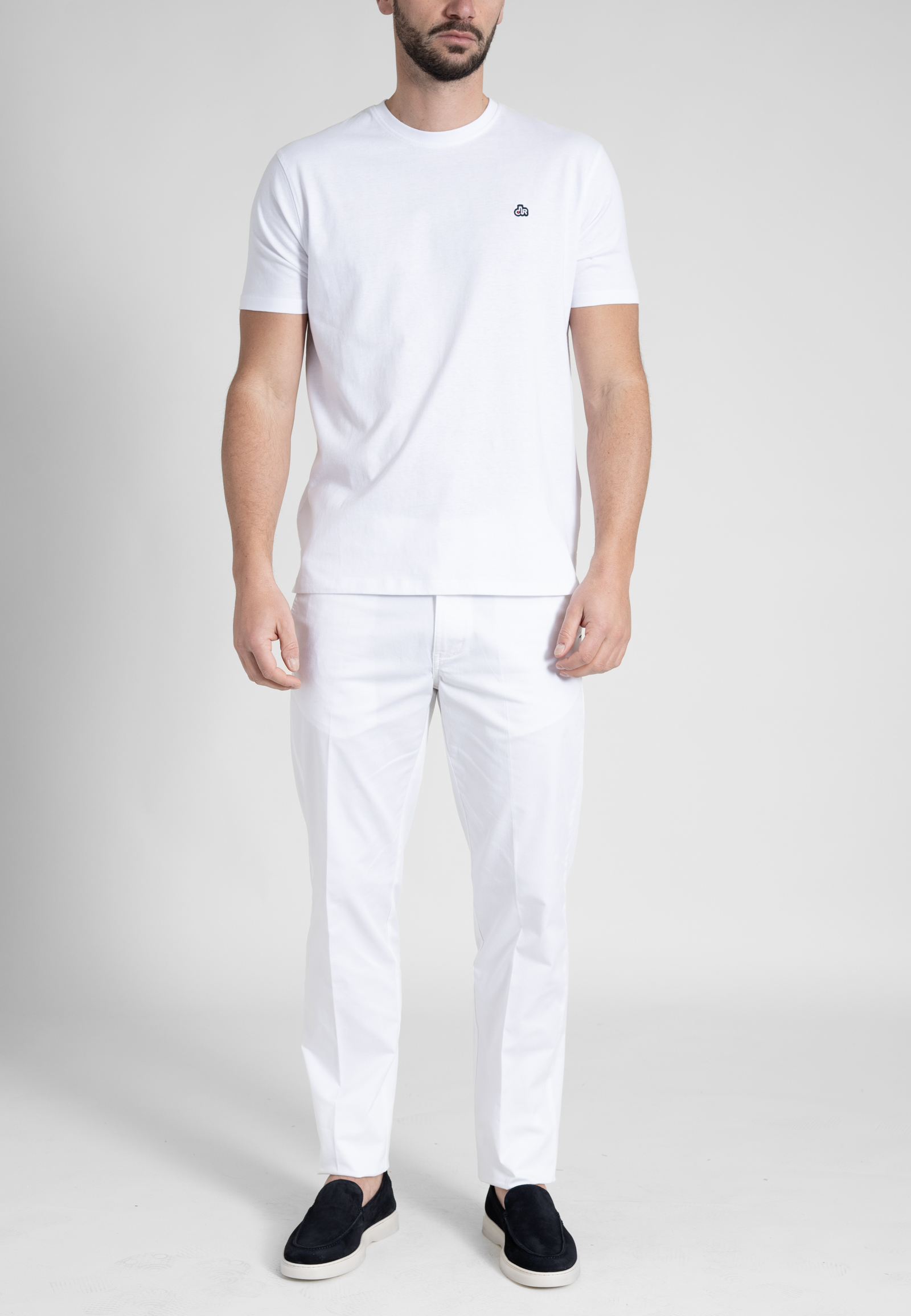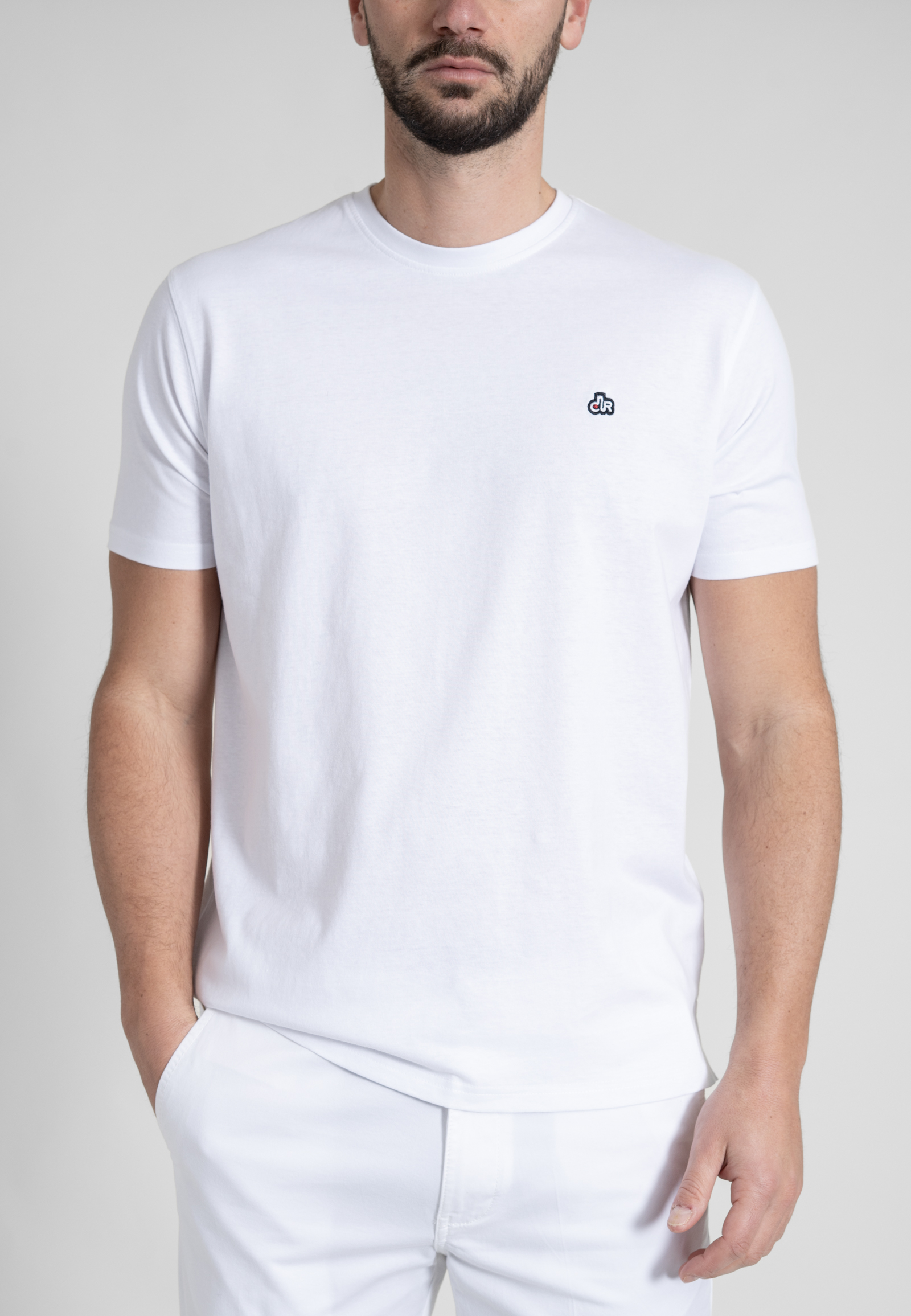 Mπλούζα λαιμόκοψη από βαμβάκι combed. Κανονική γραμμή, μανίκι κοντό, σκισίματα στις κάτω πλαϊνές ραφές και το λογότυπο Dur στο στήθος.