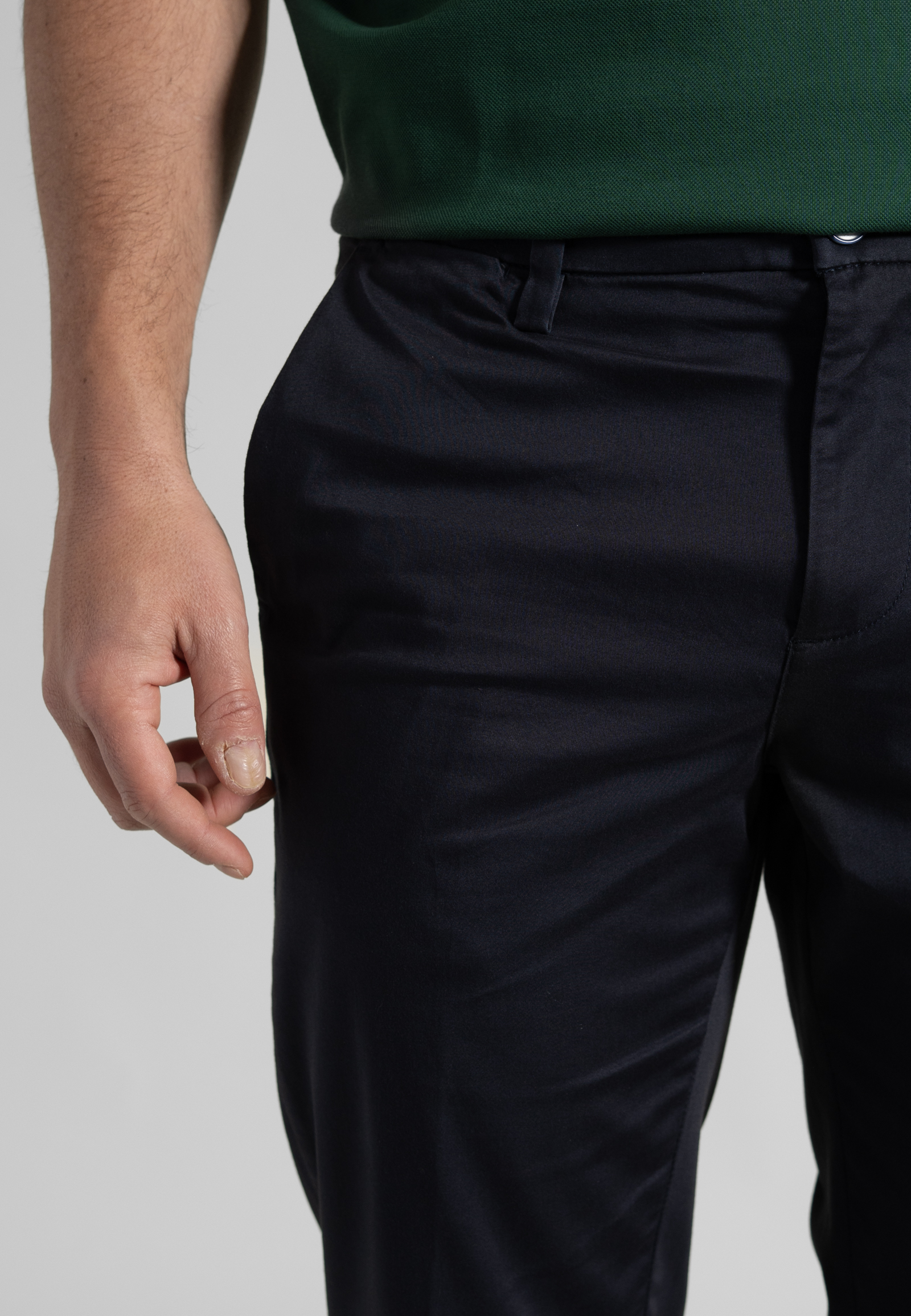 Σκούρο Μπλε Παντελόνι Chino Satin Stretch Κανονική Γραμμή
