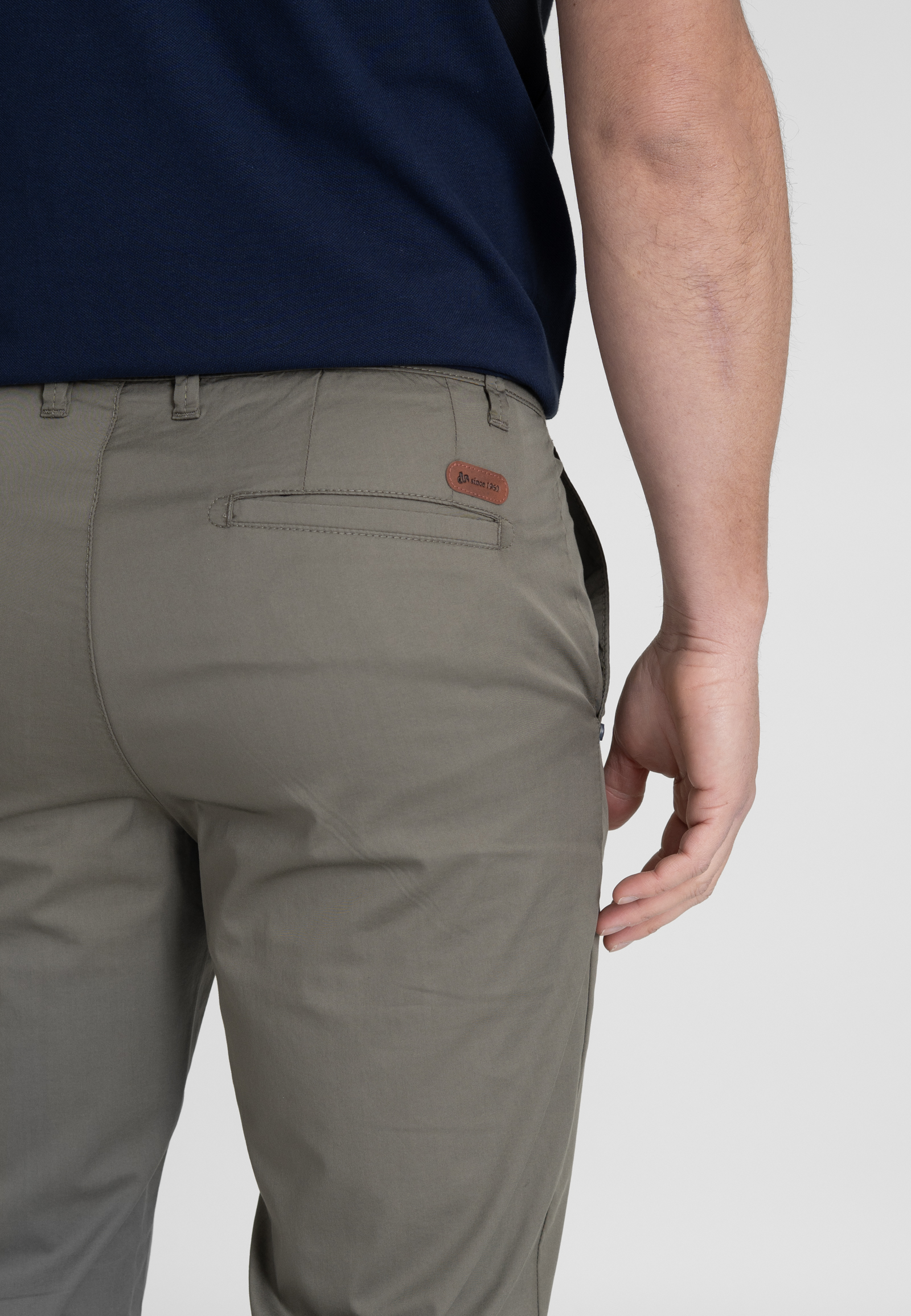 Tech ελαστικό εξαιρετικά ελαφρύ βαμβακερό παντελόνι σε άνετη γραμμή. Εφαρμογή μέσης σε μεσαίο ύψος, κλείσιμο με τρουκ, δύο τσέπες στα πλάγια και δύο στην πίσω πλευρά. Το λογότυπο χαραγμένο σε δερματάκι.