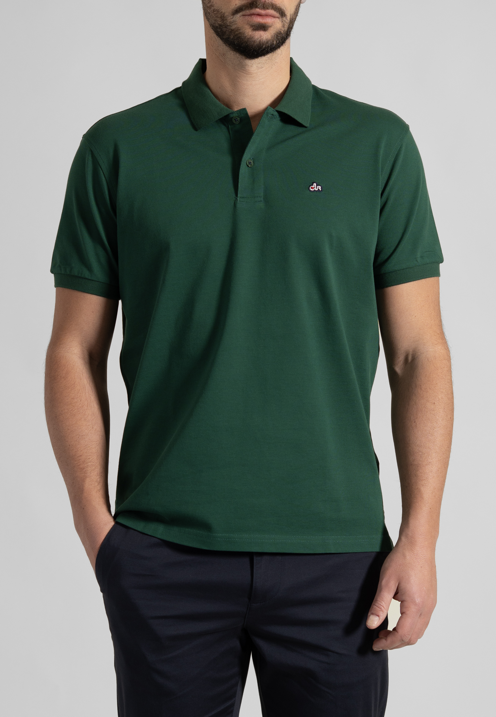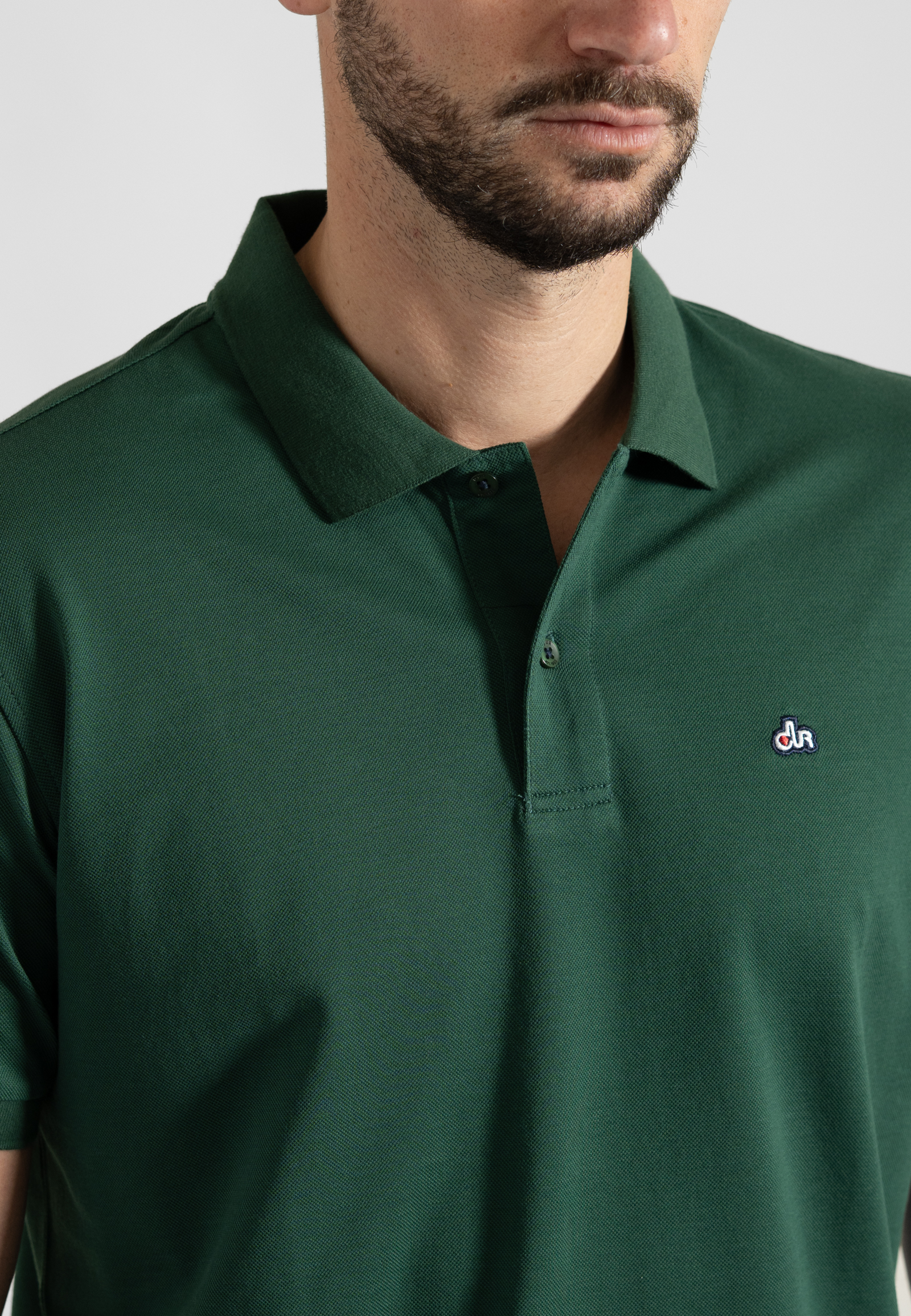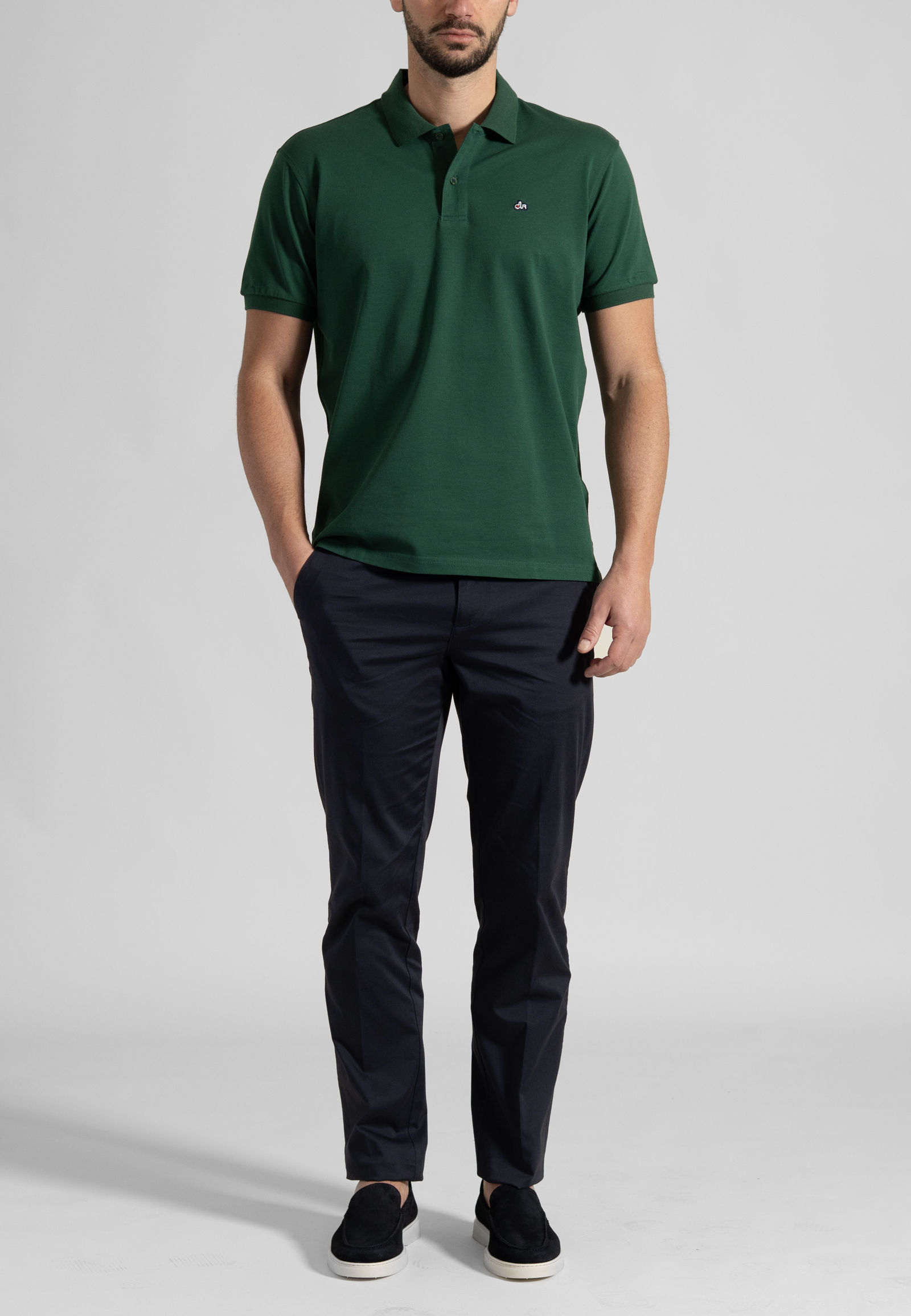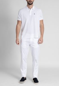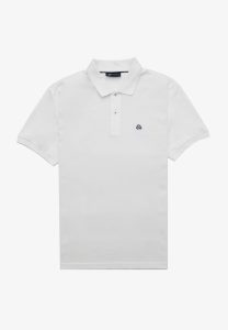 “Pima” πόλο πικέ μονόχρωμο σε άνετη γραμμή. Πατιλέτα με δύο κουμπιά φίλντισι, γιακάς ριπ, μανίκι κοντό με τελείωμα ριπ, σκισίματα στις κάτω πλαϊνές ραφές και το λογότυπο στο ύψος του στήθους.