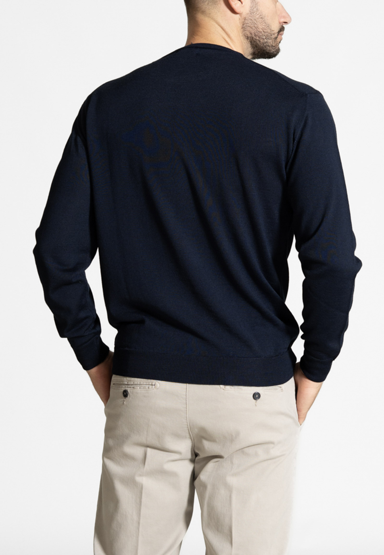Πλεκτό λαιμόκοψη από extra fine μαλλί μερινός σε κανονική γραμμή. Ύφανση λεπτή και ριπ τελείωμα στο κάτω μέρος και στο μανίκι.