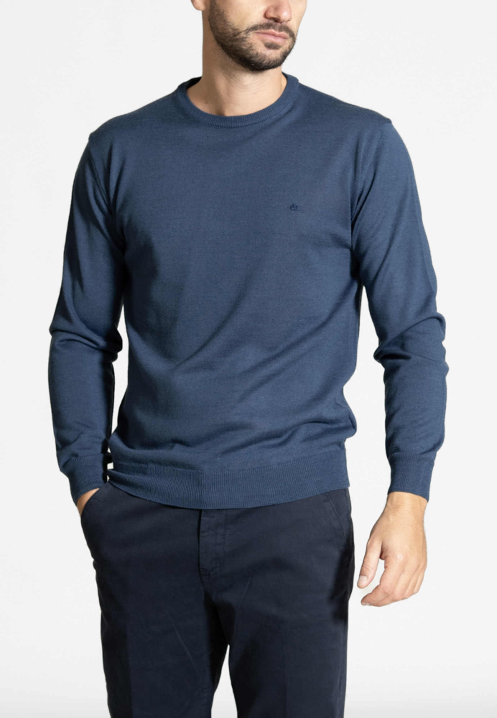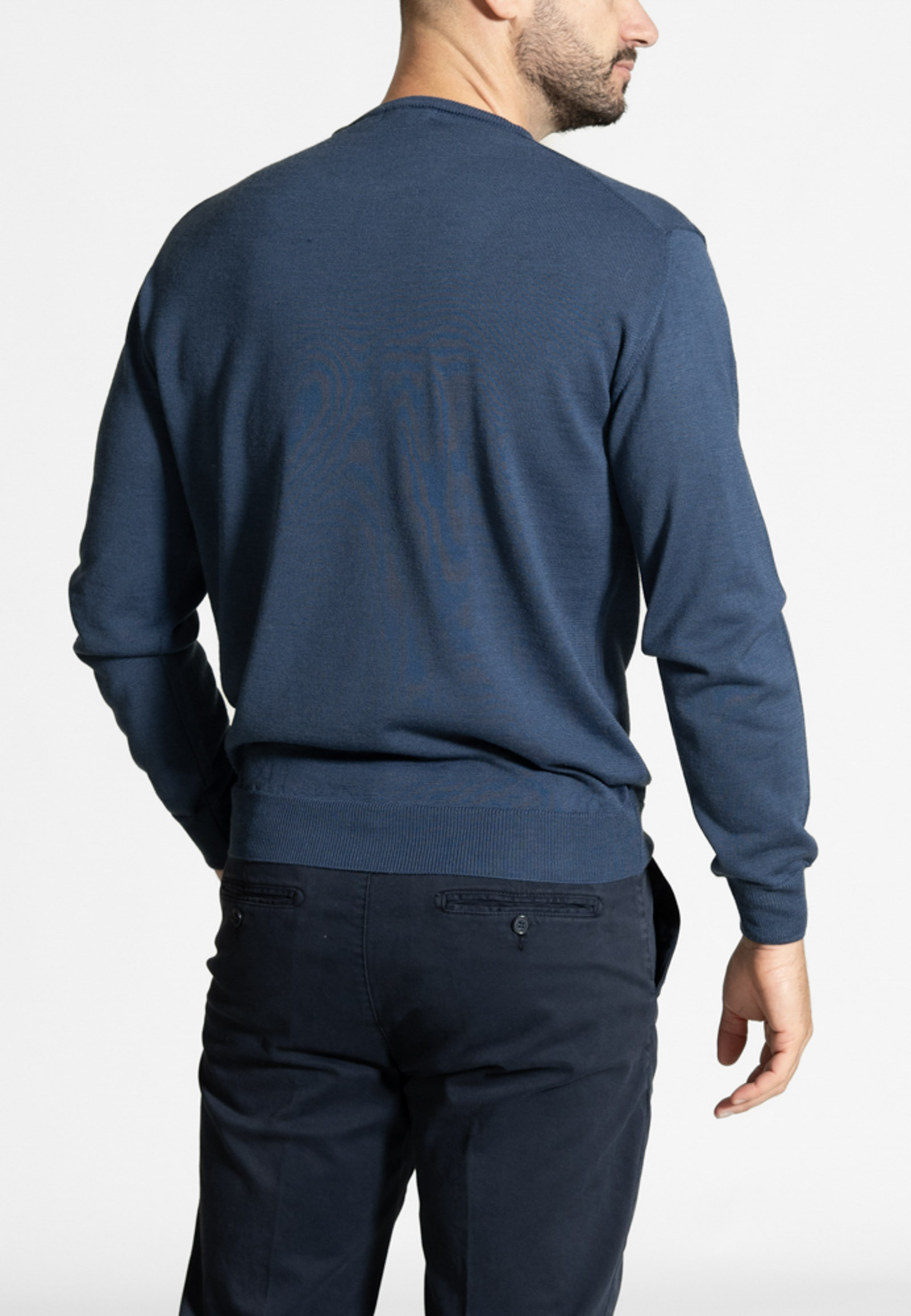 Πλεκτό λαιμόκοψη από extra fine μαλλί μερινός σε κανονική γραμμή. Ύφανση λεπτή και ριπ τελείωμα στο κάτω μέρος και στο μανίκι.