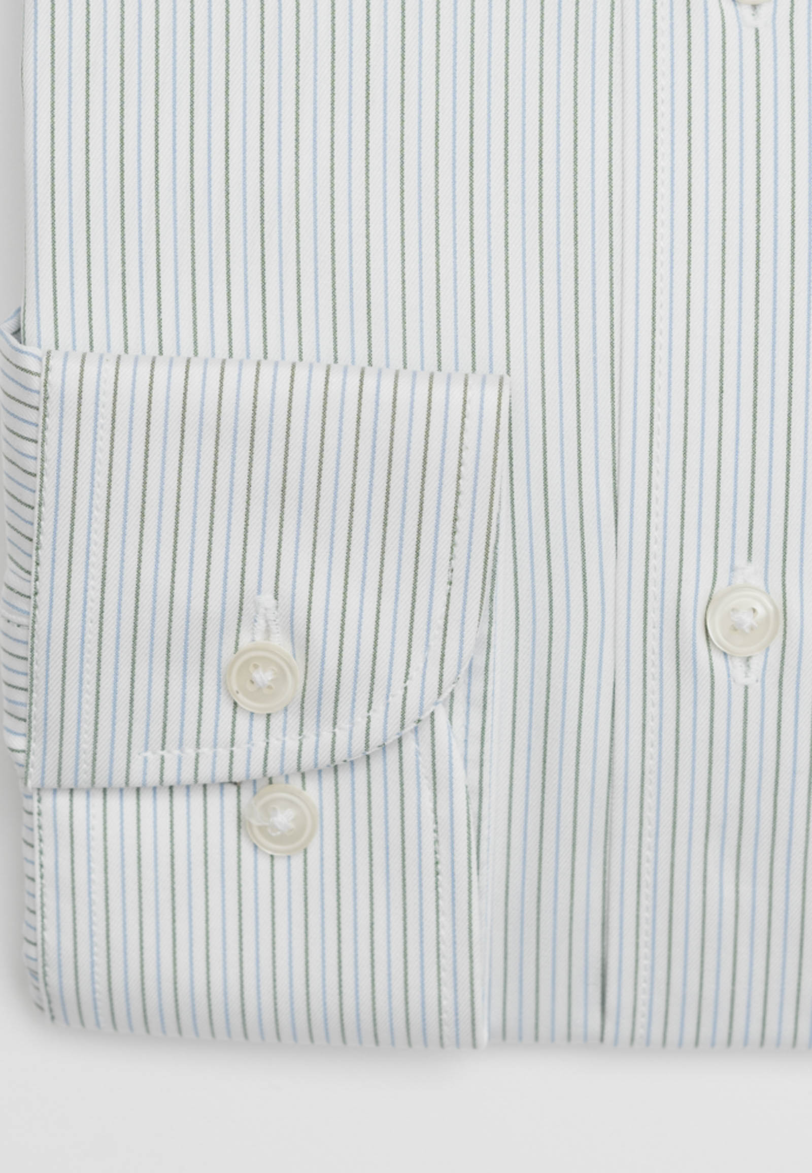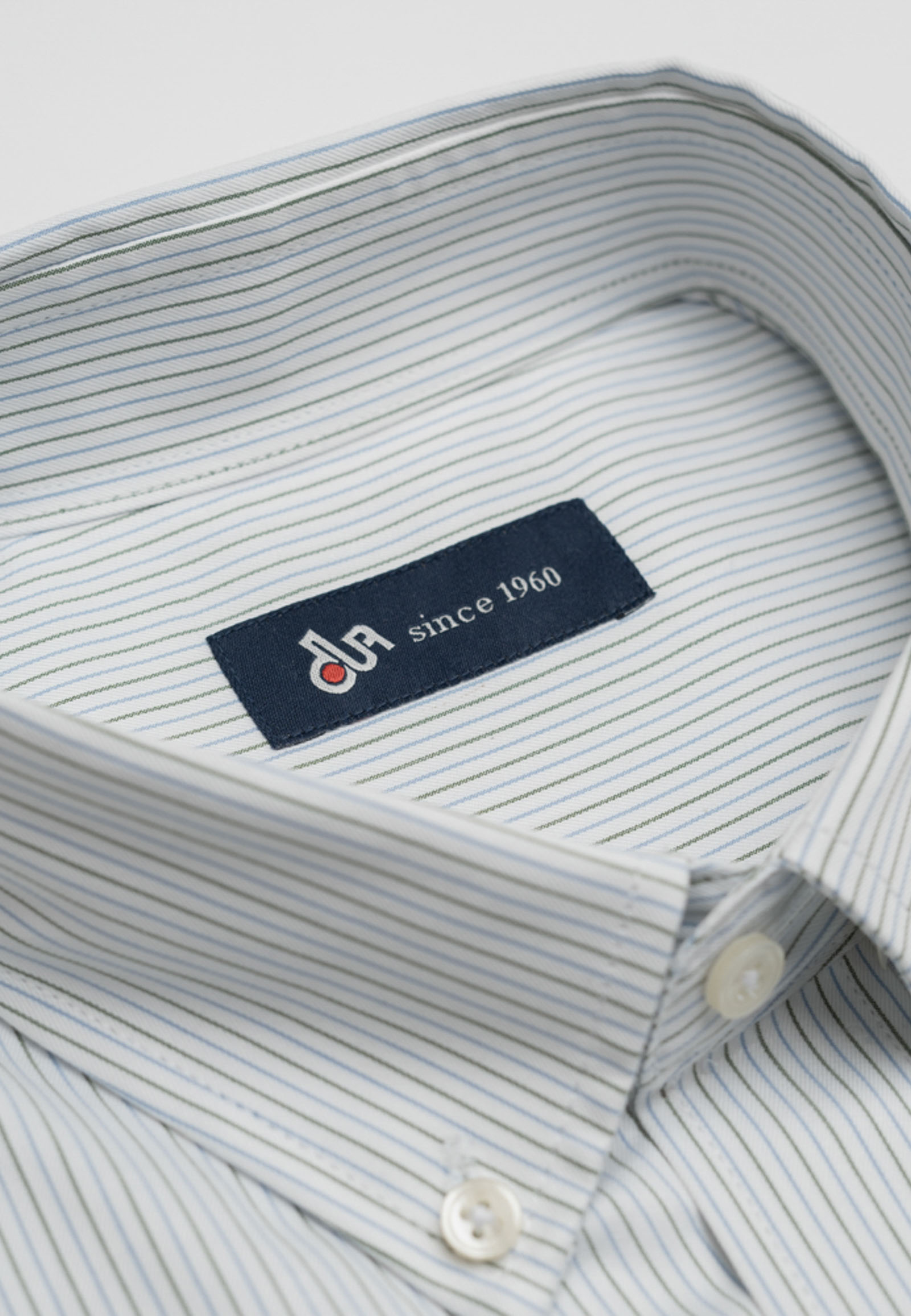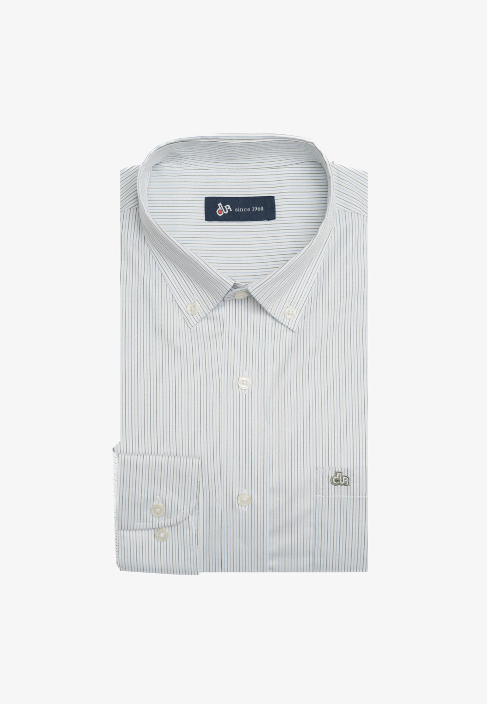 Πουκάμισο ριγέ σε κανονική γραμμή. Γιακάς με κουμπί, τσέπη στρογγυλή με κεντημένο το λογότυπο και μανσέτα στρογγυλή με δύο ρυθμιζόμενα κουμπιά. Κλείσιμο με πατιλετομηχανή έξι κουμπιών και πλάτη με μία πιέτα στο πίσω μέρος για άνεση στη κίνηση.