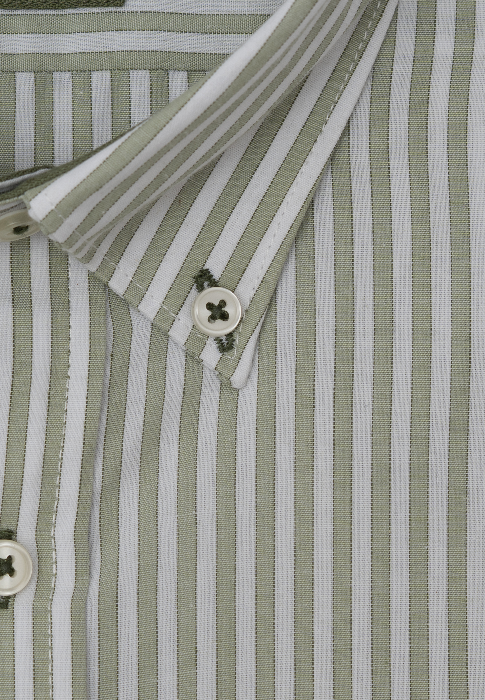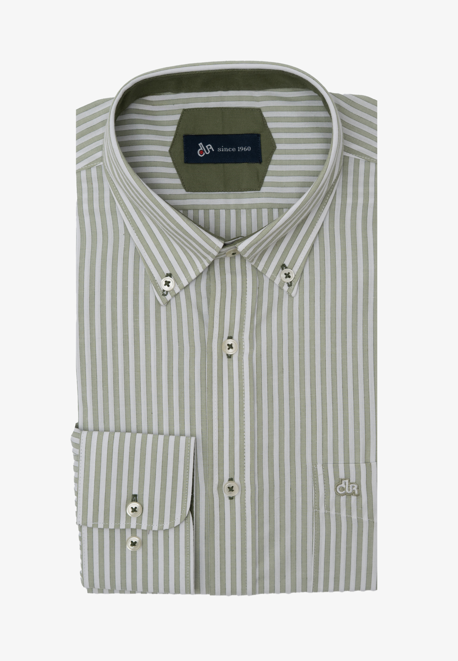 Πουκάμισο ριγέ σε κανονική γραμμή από βαμβάκι slub. Γιακάς με κουμπί, τσέπη τρίγωνη, κλείσιμο με πατιλέτα 7 κουμπιών και μανσέτα στρογγυλή με δύο ρυθμιζόμενα κουμπιά. Το λογότυπο κεντημένο στην τσέπη.