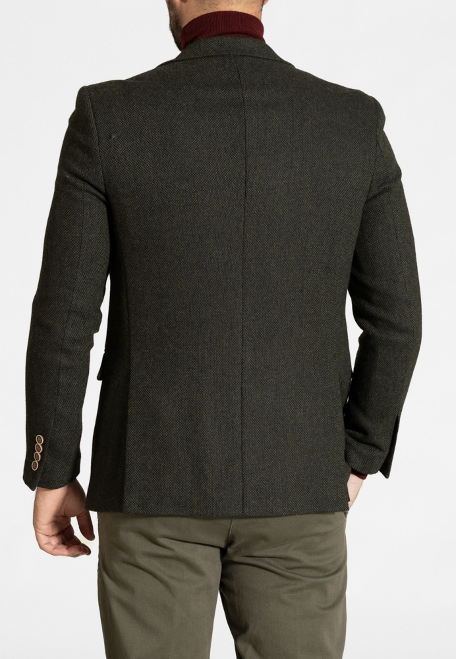 Σακάκι Tweed καφέ-λαδί από μάλλινο μείγμα